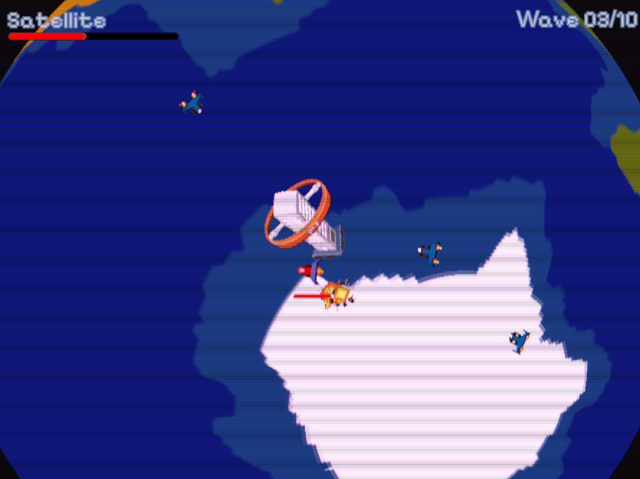 Planet Defenders is a wave-based arcade shooter set in low Earth orbit. You pilot a small spacecraft and must protect a satellite from incoming enemy ships.